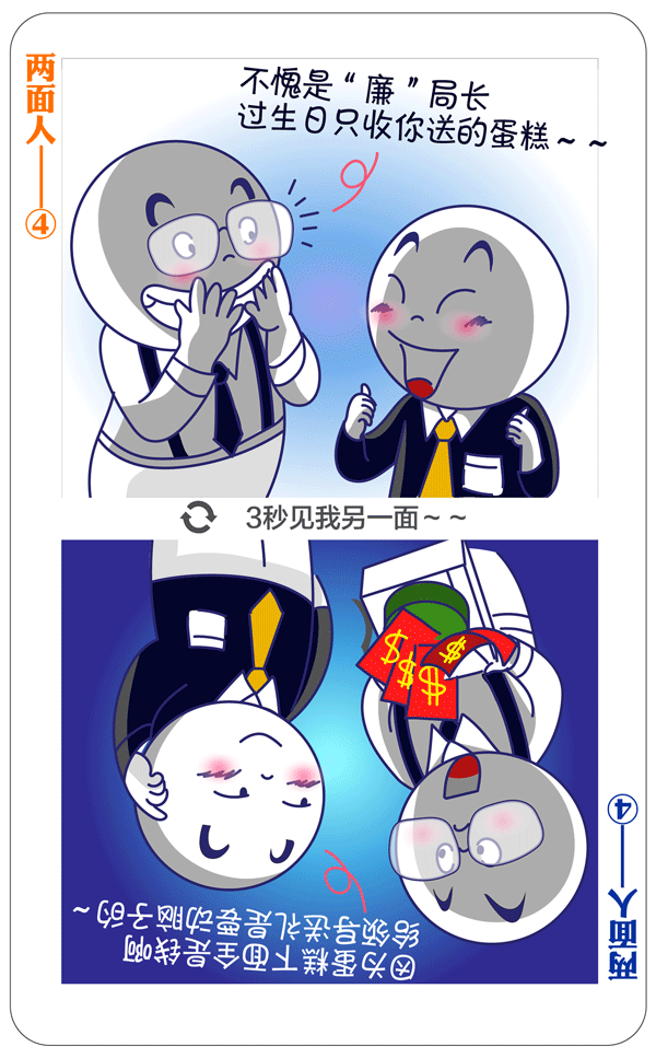 习近平总书记多次强调:“坚决反对搞两面派、做两面人。”大量案件表明,党内有一些人在这方面问题很突出。我们要给政治上蜕变的两面人画个像,摆摆他们的一些表现。今天推出第四期:“有的张口“廉洁”、闭口“清正”,私底下却疯狂敛财。